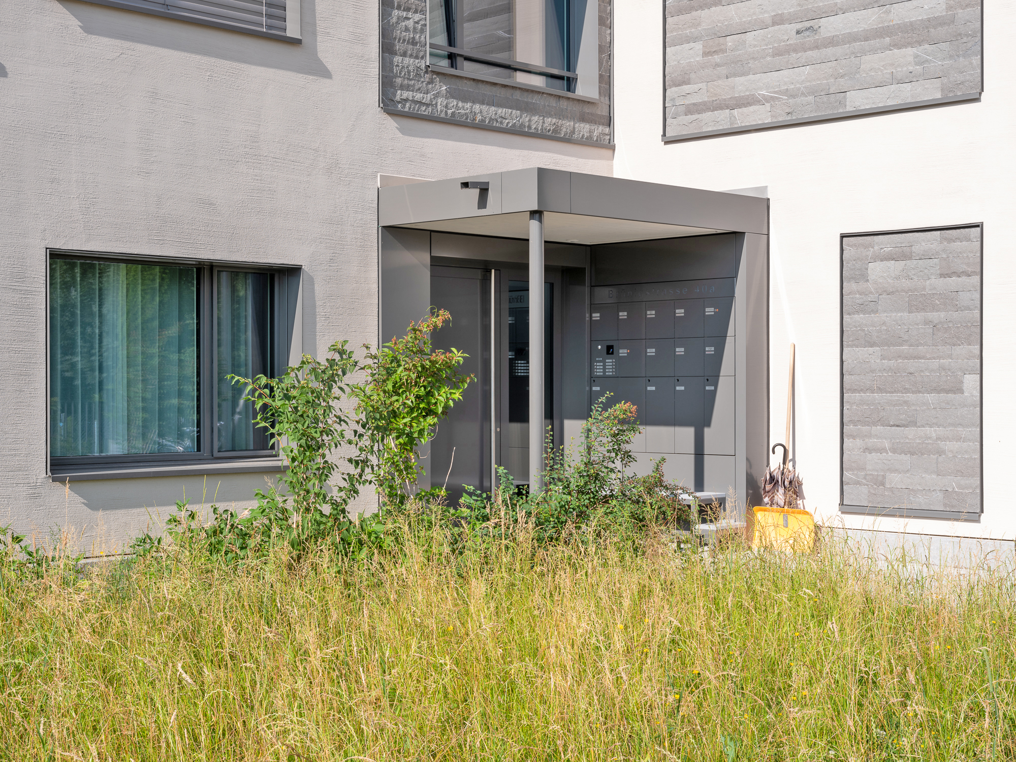 Mit viel Liebe für das Detail entstand im Dorfzentrum von Alpnach das Mehrfamilienhaus «Casa Rotonda». Bei diesem Neubau konnte mit dem leicht versetzten Grundriss das Gesamtvolumen aufgelockert und eine Staffelung erzeugt werden. Die Natursteinelemente in der verputzten Fassade sind mit Aluminium-Zargen umrandet und verleihen dem «Casa Rotanda» einen individuellen Charakter.